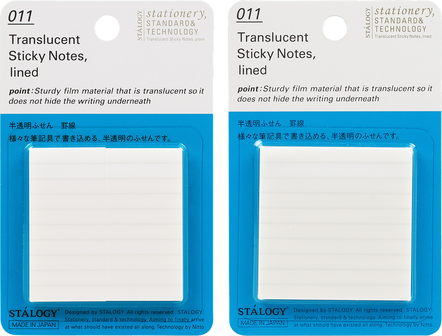 一种便于写字的带格线的随便签。由于是半透明的,所以底下的文字也能透过来。使用了不易破碎,并且书写性出色的薄膜材料。为了便于根据用途来使用,备有15mm、25mm、50mm宽的3种规格。