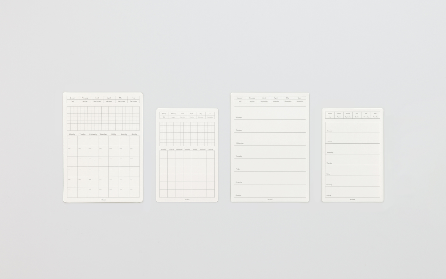 月間カレンダーは13枚入り、週間カレンダーは10枚入りになります。